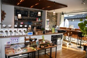 ◇昨春、本店内を改装して〝超地域密着型の新しいでんき店〟「クラシンクコムタテイシ」にリニューアル。店内各所に家電の体験ブースを設けた。その一環で、コーヒースタンドもオープンした。
