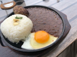 20度前後の気温と過ごしやすい季節を迎え、瀬戸内海の多島美が一望できるテラス席で、鉄板の上に盛り付けたカレーライス「鉄板焼きカレー」(1500円)=写真=を注文する客が増えている。タマネギや無臭ニンニク、スジ肉とスパイスを合わせて煮込み、5日間ねかすことで旨味とコクを出したカレール―は鉄板で提供することで、とろみが出るなどの味の変化が楽しめる。玉子やナン、チーズのいずれかが付き、牛と豚の合い挽きのハンバーグをトッピングする客も多いと言う。丘の上にあることから、海からの心地よい風が吹き込み、石村朱沙子マネージャーは「熱々のカレーを味わいながら絶景を楽しんで」と話した。