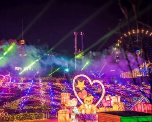 ◇3世代で楽しめるテーマパークで、中四国最大級の冬季イルミネーションイベントが始まった。5台のミラーボールによるミラーボールエリア、100万球のLED電球によるしばふ広場、光る大型アトラクションなどがロマンチックな雰囲気を演出。点灯期間はSaucyDogの楽曲に包まれる。入園料1800円、3歳―小学生1500円、ナイトパス料金は2800円、3歳―小学生2500円。