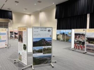 写真は三原の文化財や歴史的な景観などを70枚の大型パネルで紹介しているコーナーで、講演会ほか各イベントの会場になっている。