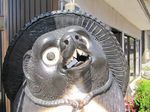 料理屋などの店頭によく置かれている信楽焼の狸の故郷である信楽町に行ってきた。滋賀県南端の小さな町には何軒もの陶芸店がひしめいていて、どの店の店頭にもあの狸が何十匹も列をなしていることに驚いた。高さ2m位の大狸から猫ほどの大きさまでの狸が背の順にずらりと並んでいる。さらに店内には手のひらに乗るほどのものや親指サイズの小型狸が入店客を待っている。町全体では何匹のタヌキがいるものやら、それが皆売れるものなのだろうかと心配になってくる。