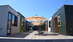 なゆた工務店㈱(府中市高木町61—2、臼井大輔社長、電0847・44・9477)はこのほど、延べ床10㎡以下の小さな木の家「kinoe(きのえ)」を開発。庭にすっきり収まる離れとして、カフェや雑貨店、アトリエ、レッスン室などとして気軽に活用できる。その「kinoe」のモデルハウスを5棟並べた「kinoe Try village(きのえトライビレッジ)」をこのほど本社隣にオープンさせた。シェアストアや教室など、「やりたいことの実験場」として活用してほしいと呼びかけている。賃料やイベントなどは、トライビレッジのHP(https://kinoe.space/)やインスタグラム(@kinoe_try_village)を参照。
