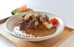 福山の元祖ステーキ丼専門店・黒べぇさん手城店(福山市手城町2―26―12、電084・923・2803)と本庄店(同市南本庄町1—9―21、電同925・5517)はこのほど、残暑疲れを乗り切るための食欲増進企画「スタミナカレー」を売り出した。「牛すじカレー」に、「カリカリステーキ丼」のやわらか肉を載せるという、人気メニュー同士のコラボを実現。1杯1500円(税込、以下同)=写真=だが、肉まし2倍が1830円、同3倍が2160円で楽しめる。