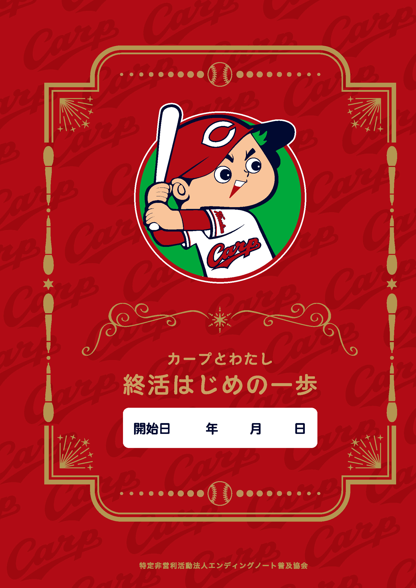 NPO法人エンディングノート普及協会(福山市新市町宮内77、赤川直美理事長、電070・8484・8638)はこのほど、「カープとわたし 終活はじめの一歩」と題したオリジナルエンディングノート(広島東洋カープ球団承認、税込2200円)=写真上=を制作。11月15日〔土〕より販売をスタートする。