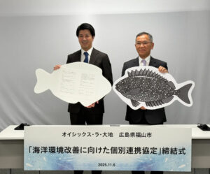 食品のサブスクリプションサービスを提供するオイシックス・ラ・大地㈱(東京都品川区、高島宏平社長)は11月6日、福山市(枝広直幹市長)と「海洋環境改善に向けた個別連携協定」を締結した。