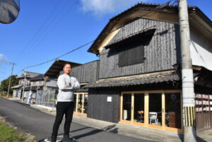 福山市芦田町福田のセントラルキッチンの前に立つ麥田社長