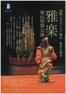 国際ソロプチミスト福山(事務局=福山市三之丸町8―16・福山ニューキャッスルホテル内、柏原淳子会長、電)は、2月21日〔土〕午後4時からリーデンローズ(同市松浜町)大ホールで教育公演会「雅楽 福山特別公演会」=写真=を開く。