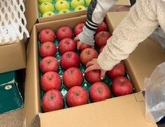 12月15日、三原市(岡田吉弘市長)に今青森県の津軽みらい農業協同組合から特産のリンゴが贈られた=写真。