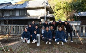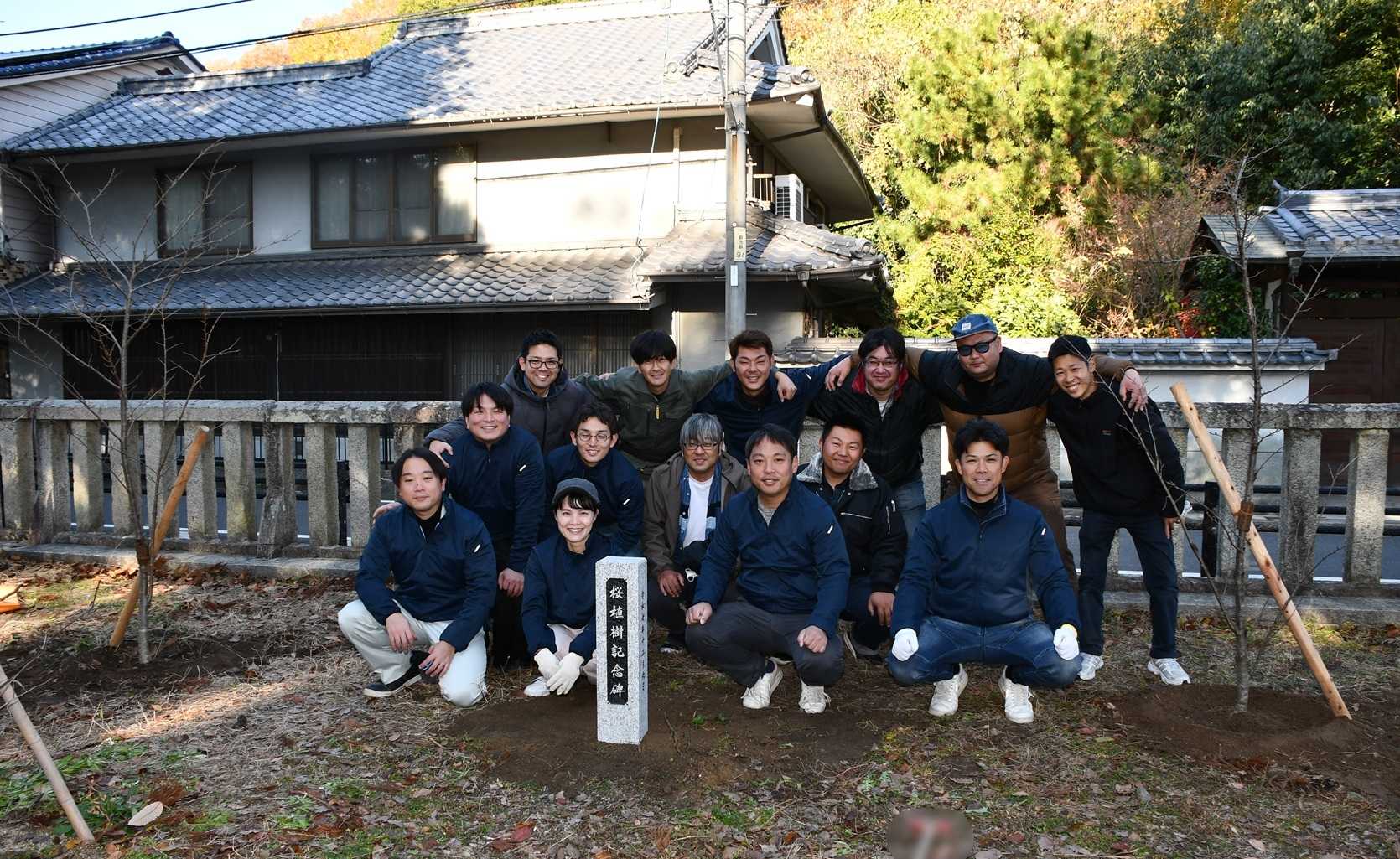 福山あしな商工会青年部(福山市新市町新市820―1、小野圭司部長、電0847・52・4882)の後迫委員会(後迫宏委員長)は12月6日、同市新市町戸手の素盞嗚神社(江熊康夫宮司)へ桜の木2本を奉納。境内の北東部(随神門北側)に植樹し、石碑を建立した後、植樹奉告祭を斎行した。