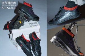 レザースニーカーの企画・製造・販売を行う㈱スピングルカンパニー(府中市府中町74―1、内田貴久社長、電0847・41・5609)はこのほど、アニメシリーズ『攻殻機動隊 SAC_2045』の世界観を表現したスニーカーを2型製作=写真上。一部のSPINGLE専門店及び公式オンラインショップ(https://www.spingle.jp/)で売り出した。