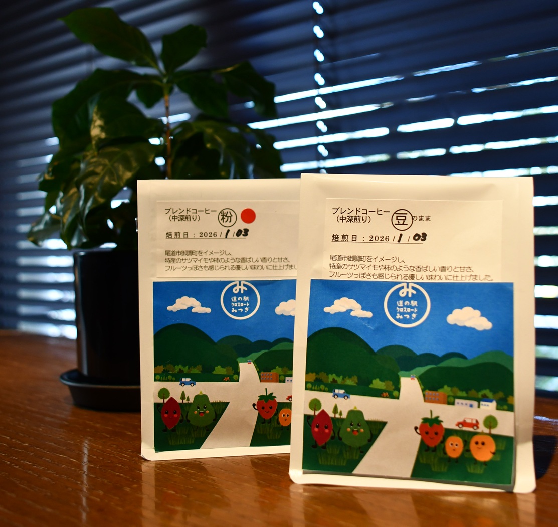 ㈱みつぎ交流館(尾道市御調町大田33、溝上伸一郎社長、電0848・76・3115)が運営する道の駅クロスロードみつぎ(石原和典駅長)はこのほど、同町をイメージしたオリジナルブレンドコーヒーを製作。2年前にはドリップパックで売り出した。豆と粉のタイプがあり、ともに税込1080円。