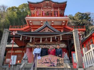 福山市の中心地にある複合施設のiti SETOUCHI=イチセトウチ(福山市西町1―1―1・エフピコRiM1階、谷口博輝館長、電084・959・3481)は、運営メンバー有志が館内利用者の学生たちの合格祈願の巨大絵馬を作成し、1月16日に草戸稲荷神社(同市草戸町、石井伸弥宮司)で祈祷を受けた。
