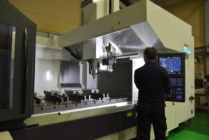 金属部品の機械加工・調達を手がける㈲メタルテック(福山市川口町1ー6ー19、木村武美社長、電084・959・2799)は、主力工場の尾道工場(尾道市西藤町151ー2)へ門型マシニングセンタを導入するなど、省力化投資を進めている。昨年採択された省力化補助金を活用し、自社開発の工作機械専用のプログラム「ポストプロセッサー」とⅭAM(支援ソフトウェア)を連携。オリジナルの自動形成パスによるNCプログラム作成や段取り工程の自動・標準化を進め、生産の高効率化を図っている。