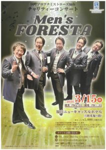 国際ソロプチミストローズ福山(事務局=福山市西町2―10―1・福山商工会議所9階、辻房江会長、電084・982・8410)は、3月15日〔日〕午後2時から福山ニューキャッスルホテル(同市三之丸町)3階光耀の間で「Men’s FORESTA=メンズフォレスタ」クラシックチャリティコンサート=写真=を開く。