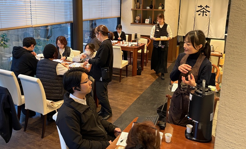 備後地方の様々な旬の食材を使いお菓子作りを行う㈲勉強堂(福山市熊野町乙1151―2、門田治己社長、電084・959・0025)はこのほど、同社の商品に合うオリジナルブレンドコーヒーをレ・ユニオンコーヒー㈱(北山英司社長)へ依頼。試飲会を兼ねた社内勉強会を催し、試作品作りを始めた=写真上。3月中旬には全店で取り扱い、和菓子とのセット販売も予定している。