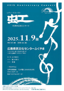 レディースコーラス 虹 40周年記念コンサートが、11月9日〔日〕午後3時から、広島県民文化センターふくやま(福山市東桜町、電084・921・9200)で開催される。