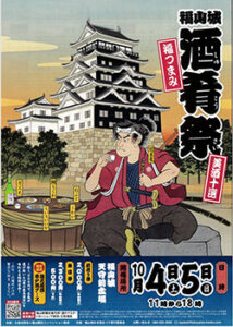 福山城で、日本酒と、福山ならではのおつまみ「福つまみ」を堪能する「酒肴祭(しゅこうさい)」が10月4日〔土〕・5日〔日〕午前11時—午後6時に福山城天守前広場(福山市丸之内)で開催される=ポスター。