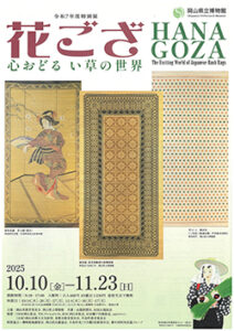 花ござ心おどる い草の世界11/23まで、岡山県立博物館 2025年11月01日号 花ござ~心おどる い草の世界~が、11月23日〔日〕まで、岡山県立博物館(岡山市北区後楽園、電086・272・1149)で開催されている。 かつて岡山が世界に誇り、身近な存在であった花ござを取り上げ、デザイン性に優れた魅力的な製品の数々とその制作技術を紹介。資料や映像によって、い草産業で活況を呈した岡山県の歴史を描く。入館料は、大人460円、65歳以上230円、高校生以下無料。 « 前のページ 次のページ »