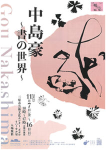 中島豪~書の世界~が、11月7日から16日〔日〕まで、三原市芸術文化センターポポロ(三原市宮浦、電0848・81・0886)リハーサル室で開催されている。入場無料。