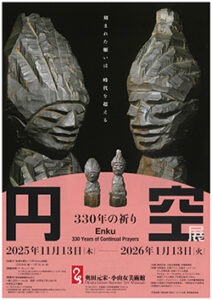 円空展330年の祈り1/13まで元宋・小由女美術館 2025年11月20日号 円空展─330年の祈り─が、1月13日〔火〕まで、奥田元宋・小由女美術館(三次市東酒屋町、電0824・65・0010)で開催されている。 初公開を含む優れた像およそ150体を紹介する。30年余りの間に、日本を巡錫しながら12万体の像を彫り遺したとされる。観覧料は、一般1200円、高大生700円、中学生以下無料。 « 前のページ 次のページ »