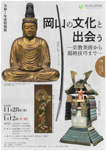 岡山の文化と出会う宗教美術から超絶技巧まで1/12まで、岡山県立博物館 2025年12月10日号 岡山の文化と出会う─宗教美術から超絶技巧まで─が、1月12日〔月・祝〕まで、岡山県立博物館(岡山市北区後楽園、電086・272・1149)で開催されている。 寄託品を含む収蔵品の中から美術工芸分野を特集。岡山を代表する文化財を2期に分けて公開する。1期は、仏教美術と備後・備中の刀剣、大鎧から当世具足までの甲冑を紹介。入場料は、大人460円、65歳以上230円、高校生以下無料。 « 前のページ 次のページ »