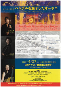 雄弁に語る管楽器 ヘンデルを魅了したオーボエ~100人の王宮の花火の音楽に向けて~が、4月25日〔土〕午後2時から、日本キリスト教団福山東教会(福山市東町)で開催される。