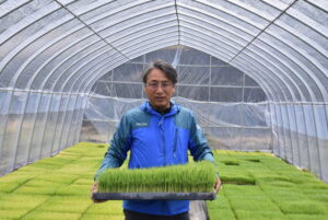 米の産地・三原市本郷地区で代々続く、米農家を父親から引き継いだ。大学卒業後に勤務した企業での30年以上の長い会社員生活を経ての第二の人生。営業畑で培われたコミュニケーション能力を武器に、近隣の農家の栽培米の販売も請け負い、広島県内の道の駅への販路開拓に力を注いでいる。四藤代表は「休耕田を引き継ぎ、作付けは開業3年目で5倍の5haになった。美味しい米を作り、販売先を増やしたい」と話す。