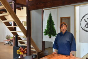 井原市立井原市民病院で管理栄養士を務めた池田さんが自宅近くの古民家を改修してギャラリーカフェを開いた。地元のアマチュア作家の作品展を定期開催しており、池田さんは「店名には備後弁でゆっくりしましょうの『一服しょうやあ』の意味を込めました。地域の人の交流の場になれば」と話す。