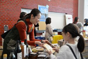 健康と環境に気を配ったブース約40店舗が集結するマルシェを毎年主催しており、4回目を11月末に笠岡市民会館で開催。米粉や麹のスイーツ、ダシやスパイスに気を配った料理などのブース、少林寺拳法や警官や消防士の発表ステージなどのほか、今年は、地元の助産院「晴れの国お産所」を舞台にしたドキュメンタリー映画の上映会も行われた。毎年、マイ食器の持参やゴミの持ち帰りを呼び掛ける配慮も忘れない。「おかげさまで、出店者様を抽選しなければならないほど、ご希望をいただいております」と浅野さん。