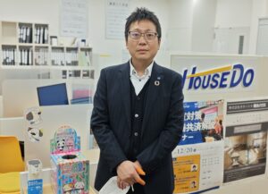 「不動産の総合サポート企業タカハシは福山・尾道エリアに賃貸住宅を仲介するアパマンショップ6店舗を展開しています。これと同じく主要な事業としているのがこのエリア内3カ所に開設しているハウスドゥで、私は本社ビルの1階にオフィスを構え、不動産の売買に関するお手伝いをしています」