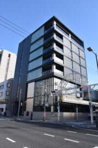 作業服大手の㈱バートル(大崎諭一社長)が新築した本社屋で、黒を基調にしたスタイリッシュなデザイン。1、2階部分は一部吹き抜けにするなど、建物に“透明感”を出した。