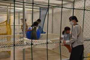 天満屋福山店の8階の福山市ネウボラセンターで遊ぶ親子