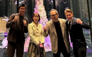 左から主演の松谷、脚本の中井さん、秋山監督、福山ローズファイターズの橋本代表