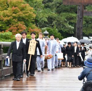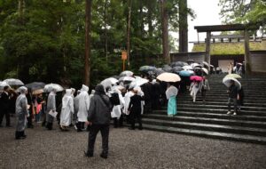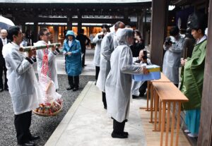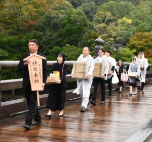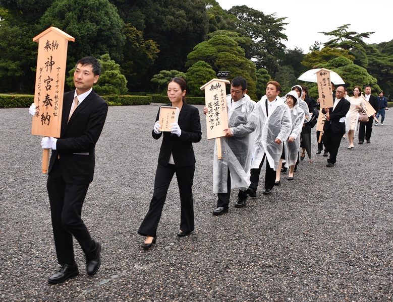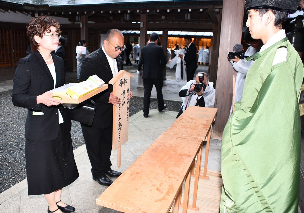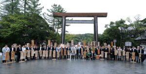 厳かな神域の中での正式な奉納は、参列した社員のモチベーションが向上するほか、参加企業トップ同士の交流や、県を超えて横展開で新たな事業が生まれることなども多くみられており、国内産業の活性化になればと渡邊名誉教授が毎年仲立ちを行ってきている。三重・岐阜・愛知の東海3県を中心に、今年は宮城県から福岡県までの15都府県から50の会社・団体・個人など約400人が参列した。