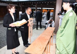 広島・岡山県内に本社がある企業8社と奉納品は以下の通り。㈱ハローズ(本社=福山市南蔵王町6—26—7、本部=岡山県早島町早島3270—1、佐藤利行社長、電086・483・1011)=ハローズセレクションの「りぼんかりんとう」、「芋けんぴ」、「むき甘栗」、専売品の「さつまいも甘納糖」