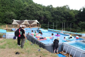 神石高原町阿下の星のこやまランドで遊ぶ家族連れ