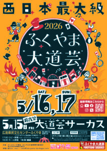 〝西日本最大級の大道芸フェスティバル〟と称されている「ふくやま大道芸2026」=写真=が、「福山ばら祭2026」期間中の5月16〔土〕・17〔日〕の両日、福山市中心街で開かれる。時間は16日が午前11時―午後9時、17日が午前10時―午後7時。主催は福山祭委員会企画実行委員会ローズロード部会(担当・福山市商店街振興組合連合会 総合事業委員会、HP=https://fukuyama-daidogei.com)。
